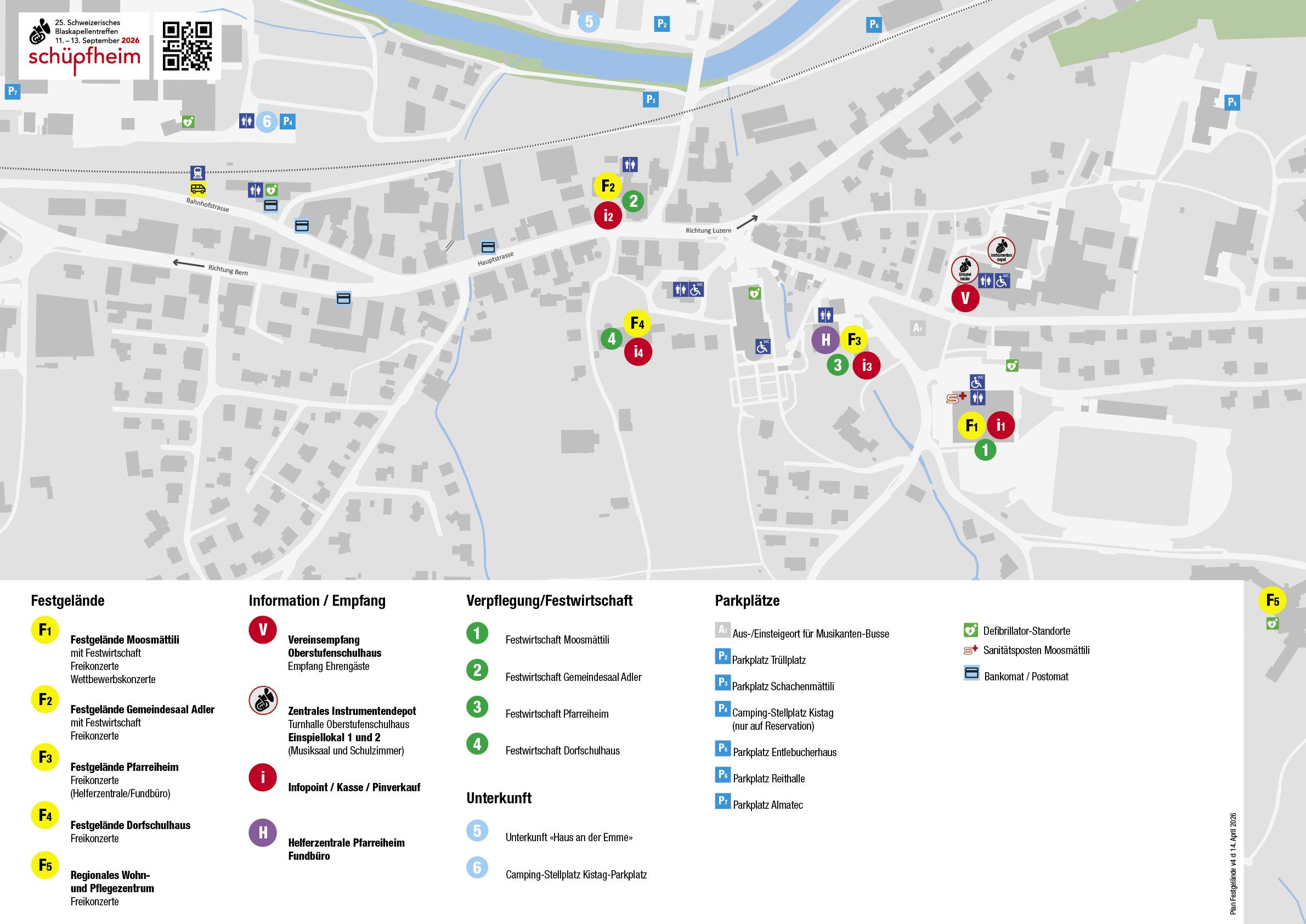 Ob Musikantin oder Musikant, Besucherin oder Besucher – das Festgelände in Schüpfheim bietet alles, um das Wochenende vom 11. bis 13. September 2026 zu einem unvergesslichen Erlebnis zu machen. Alles ist nahe beisammen und im Zentrum vom Dorf vom Bahnhof Schüpfheim innerhalb von fünf Minuten erreichbar.